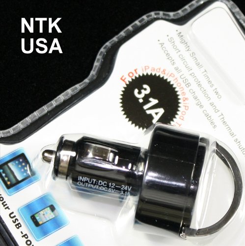 "NTK 3.1 A MINI DOUBLE DUAL USB CAR CHARGER FOR IPAD 2 IPHONE 2 3G 3GS 4G IPOD TOUCH ITOUCH SAMSUNG GALAXY TAB 7 10.1 DELL STREAK 5 7 HP TouchPad ASUS EEE TRANSFORMER TAB VIEWSONIC GTAB VIEWBOOK TABLET WITH FLIP OUT PULL RING" Overview